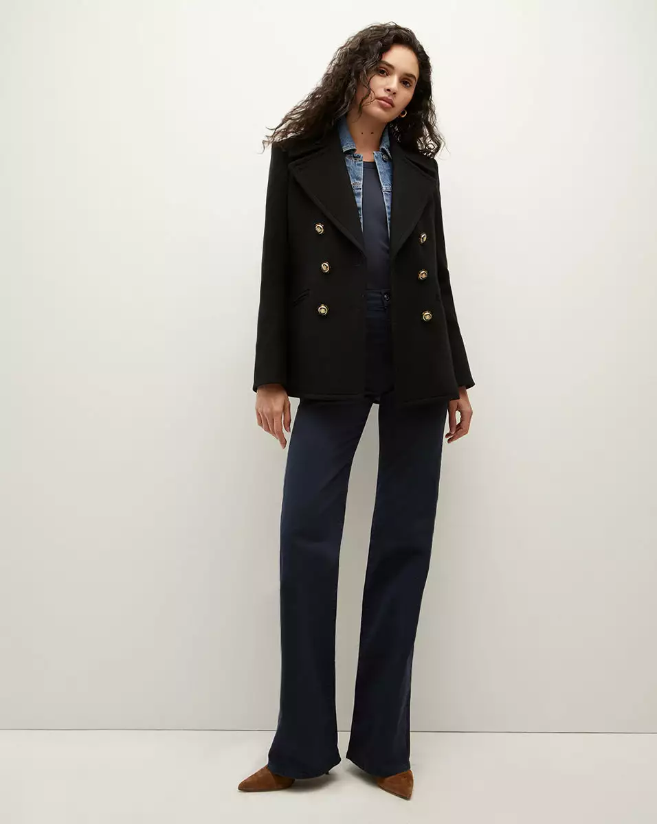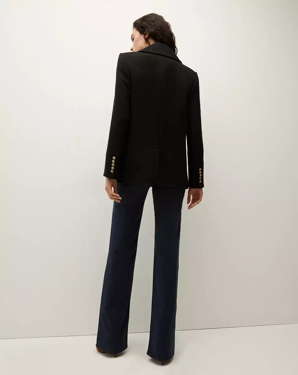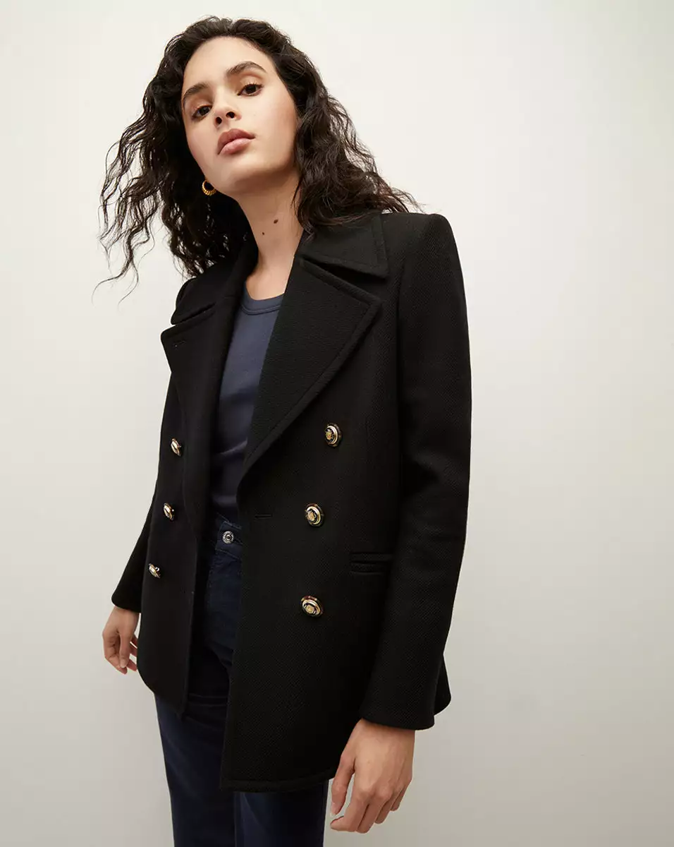 Our take on the classic peacoat, the Amira is crafted from a transitional luxury wool-twill blend. It’s relaxed yet sleek, giving you a streamlined shape while still allowing layering. Detailed with our signature gold crest buttons, it will be worn on repeat thanks to its timeless design. Plus, it’s dickey compatible, allowing you to change up its look with ease. The perfect dose of casual sophistication to fold into your everyday look—throw it over any and every outfit.