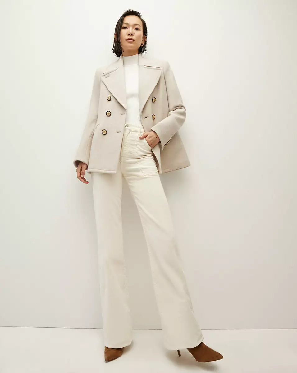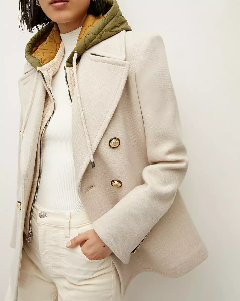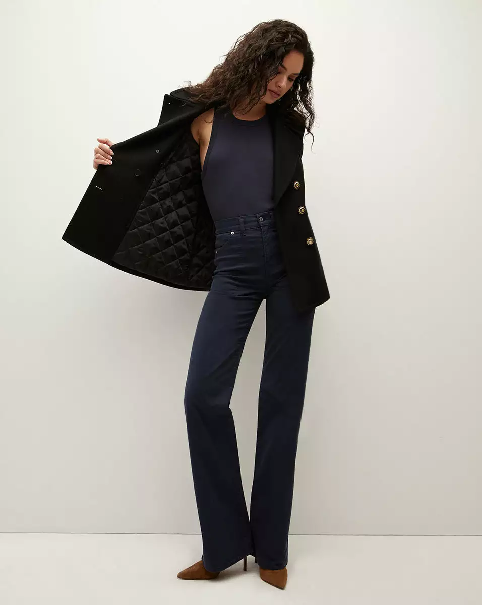 Our take on the classic peacoat, the Amira is crafted from a transitional luxury wool-twill blend. It’s relaxed yet sleek, giving you a streamlined shape while still allowing layering. Detailed with our signature gold crest buttons, it will be worn on repeat thanks to its timeless design. Plus, it’s dickey compatible, allowing you to change up its look with ease. The perfect dose of casual sophistication to fold into your everyday look—throw it over any and every outfit.