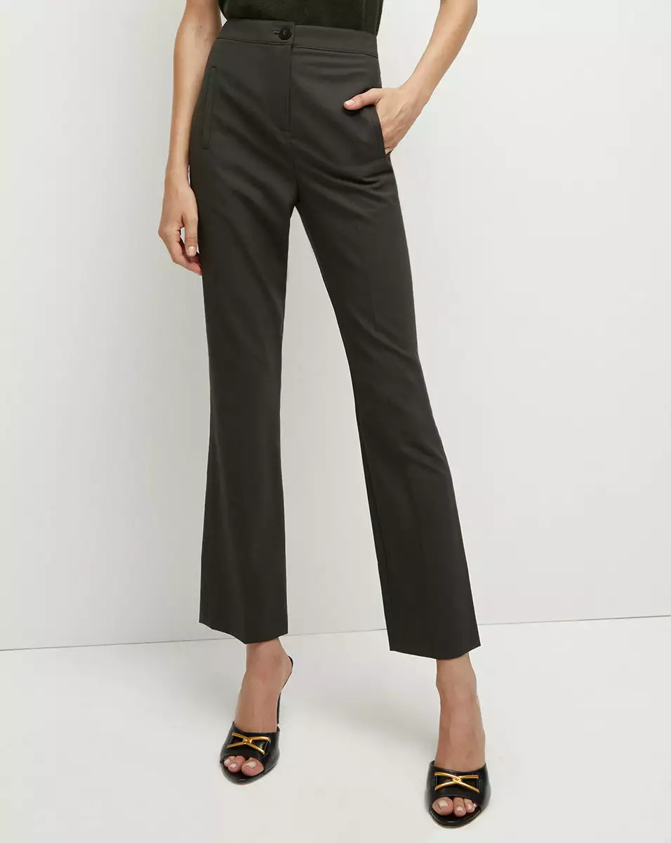 Streamlined and sleek, the Arte pant is your answer to everyday chic. With a high-rise waist, slightly flared-leg, and strategic seaming, this figure-flattering style is the perfect base to all your tops and shirts. Cut from our lightweight wool, the Arte also features functional side slit pockets. Tuck in your favorite silk top and finish with stilettos for girls’ night out.