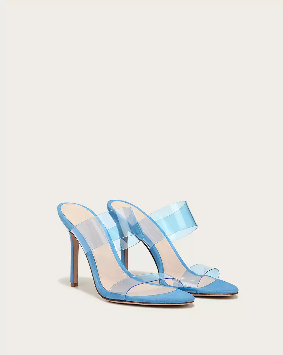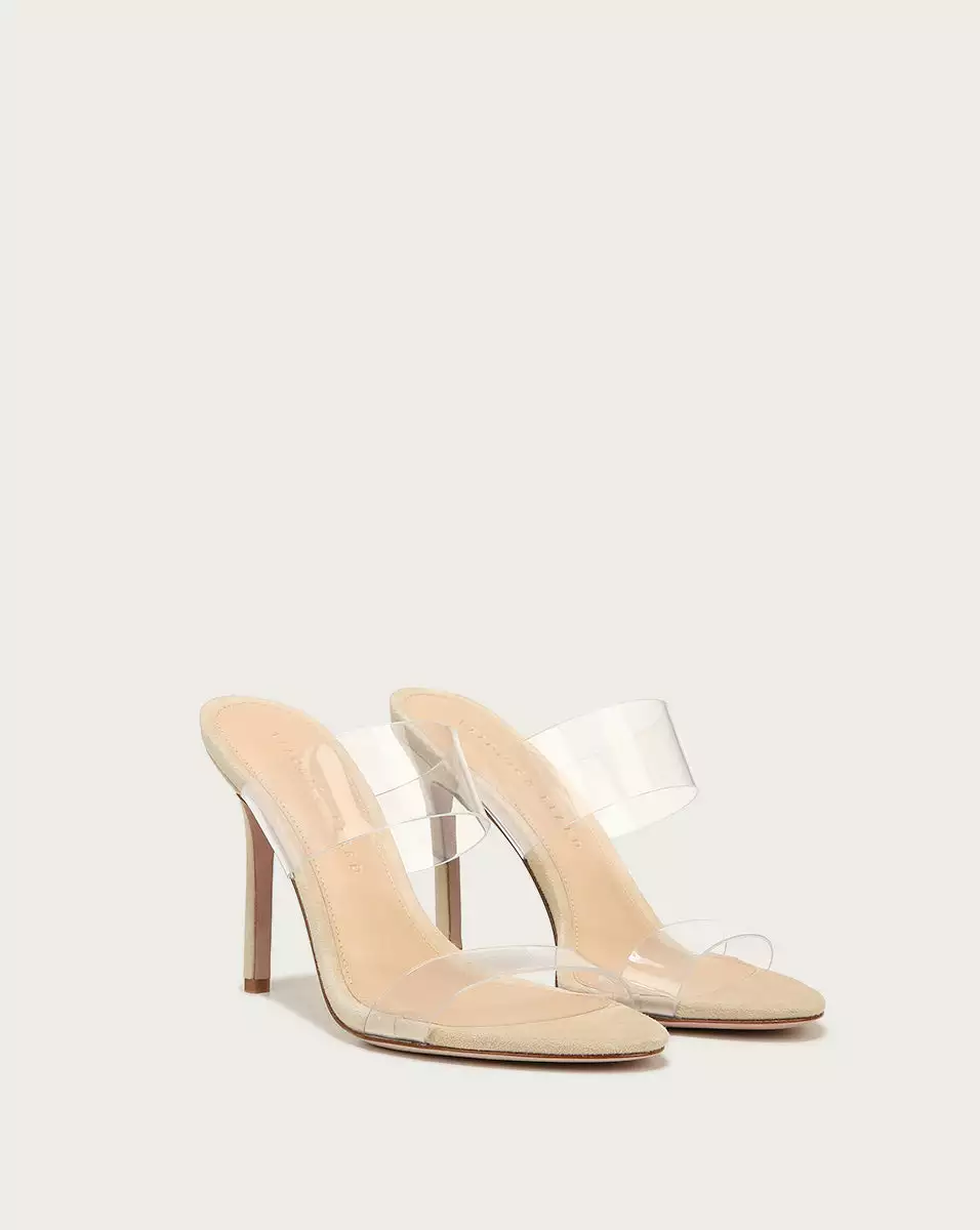 Minimalist and supremely sexy, the Asha sandal is a must-have pair. With a double-strap PVC vamp, a nude suede base and a 4″ stiletto heel, this beautifully crafted style comes with magically, leg-lengthening powers. We love styling them with jeans and a tee for a downtown-cool vibe.