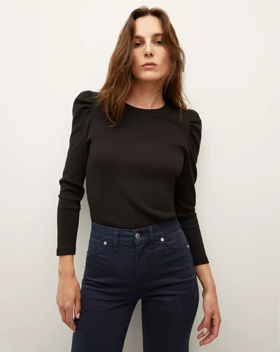 The classic tee with a feminine twist—meet the Britney. Made from premium cotton—with stretch for ease—this everyday go-to features puffed long sleeves and an easy, relaxed fit. Wear with your favorite jeans and dickey jacket, or try mixing prints by pairing it with a floral skirt—this is great on its own or as a layering essential.