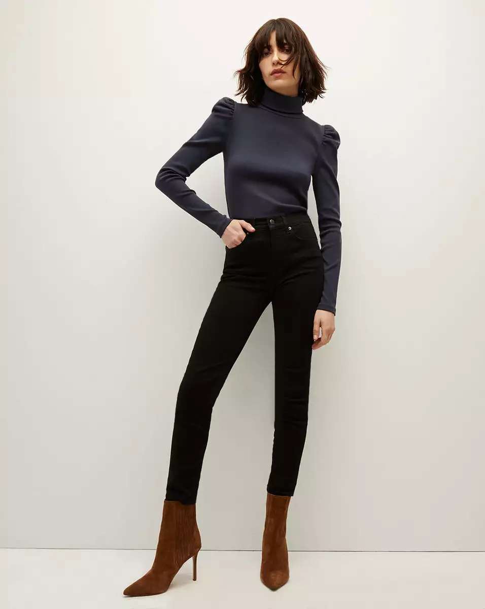 A VB favorite, the Cedar is our take on an elevated foundation piece—both perfect on its own or as a layering piece. Made from stretch cotton, this style features chic puffed sleeves, a mock neck and a super-flattering fit. This year-round go-to looks great with just about anything, but we especially love it with flared jeans and sleek booties.
