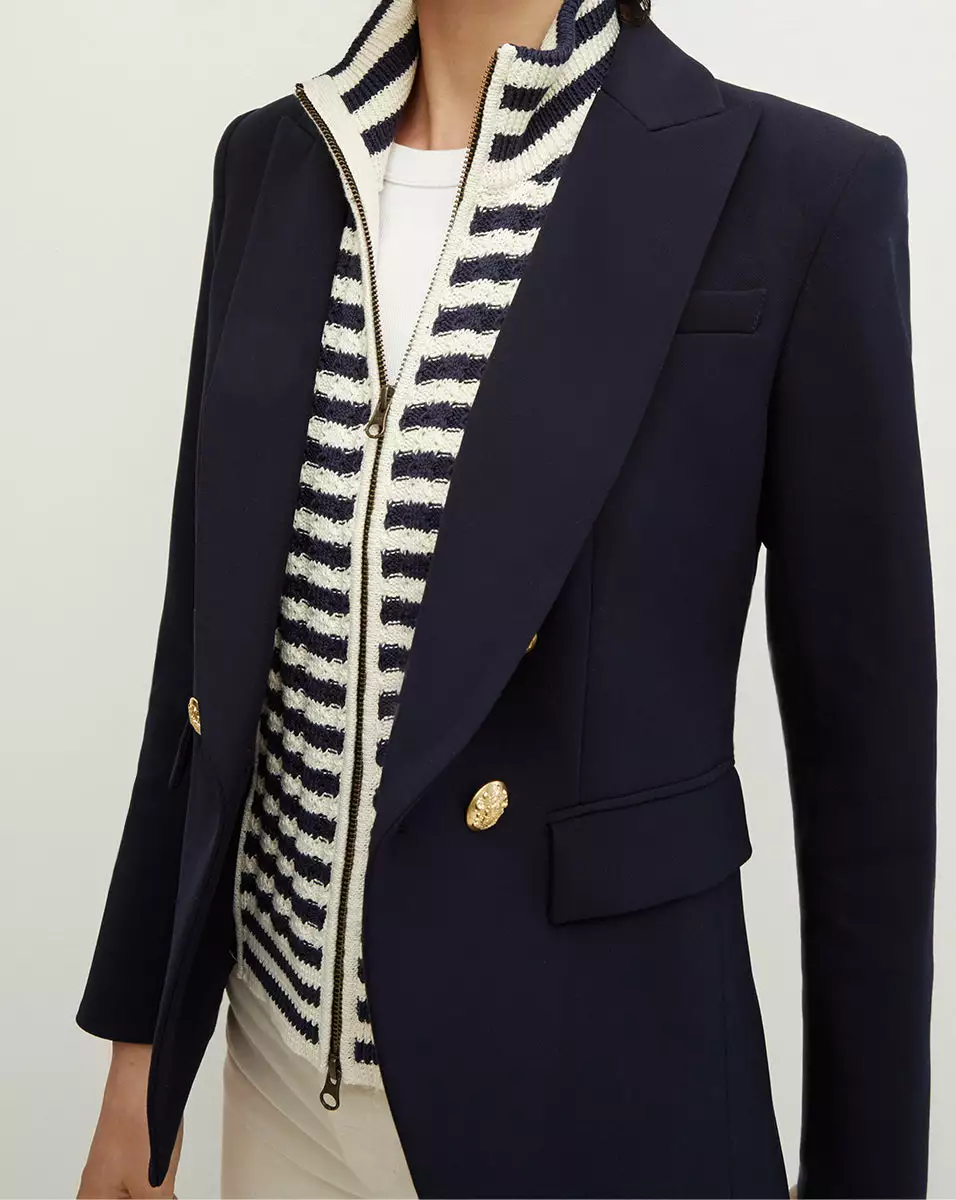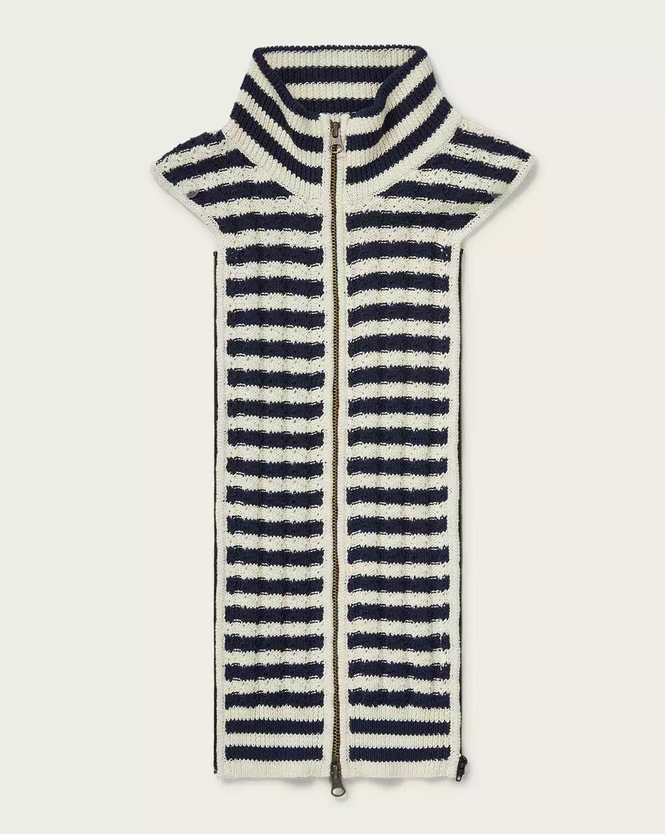 In our mid-weight cotton yarn with an airy pointelle-knit finish, the Charlton dickey is a layering essential. With classic nautical stripes and ultra-soft feel, it works well under any of your dickey jackets.Â