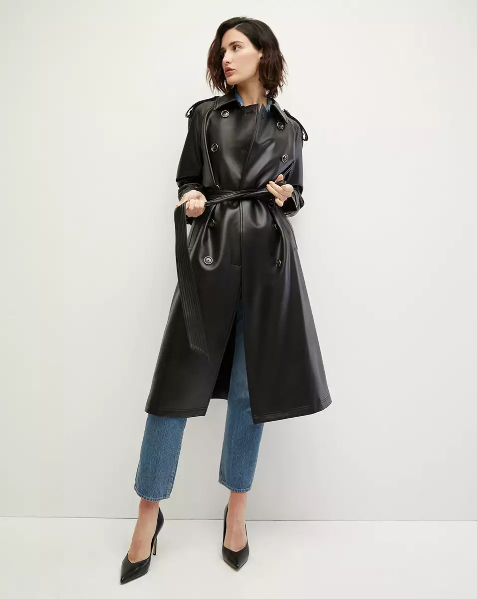 Tailored in our signature vegan leather, the Conneley is a true wardrobe investment you’ll wear day after day, year after year. It has a fitted double-breasted silhouette, epaulettes, and a waist-defining removable belt. Its dickey construction allows you to layer in any of our dickeys for added dimension. Lean into its cool simplicity and throw it over your favorite jeans-and-a-tee combination.