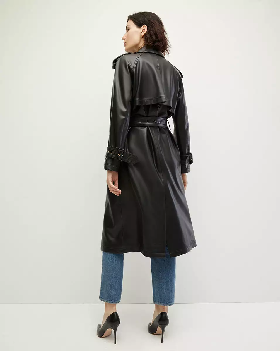 Veronica Beard Conneley Vegan Leather Dickey Trench Coat