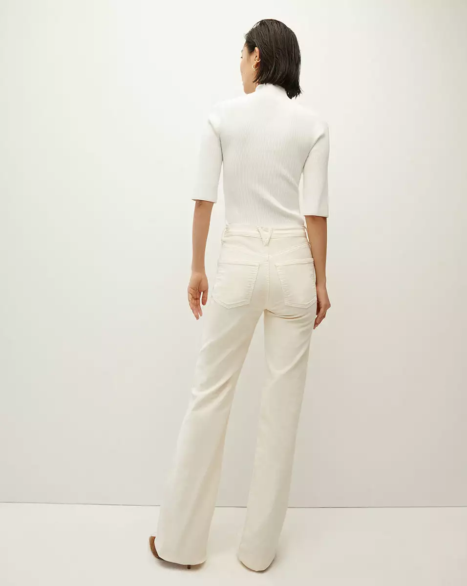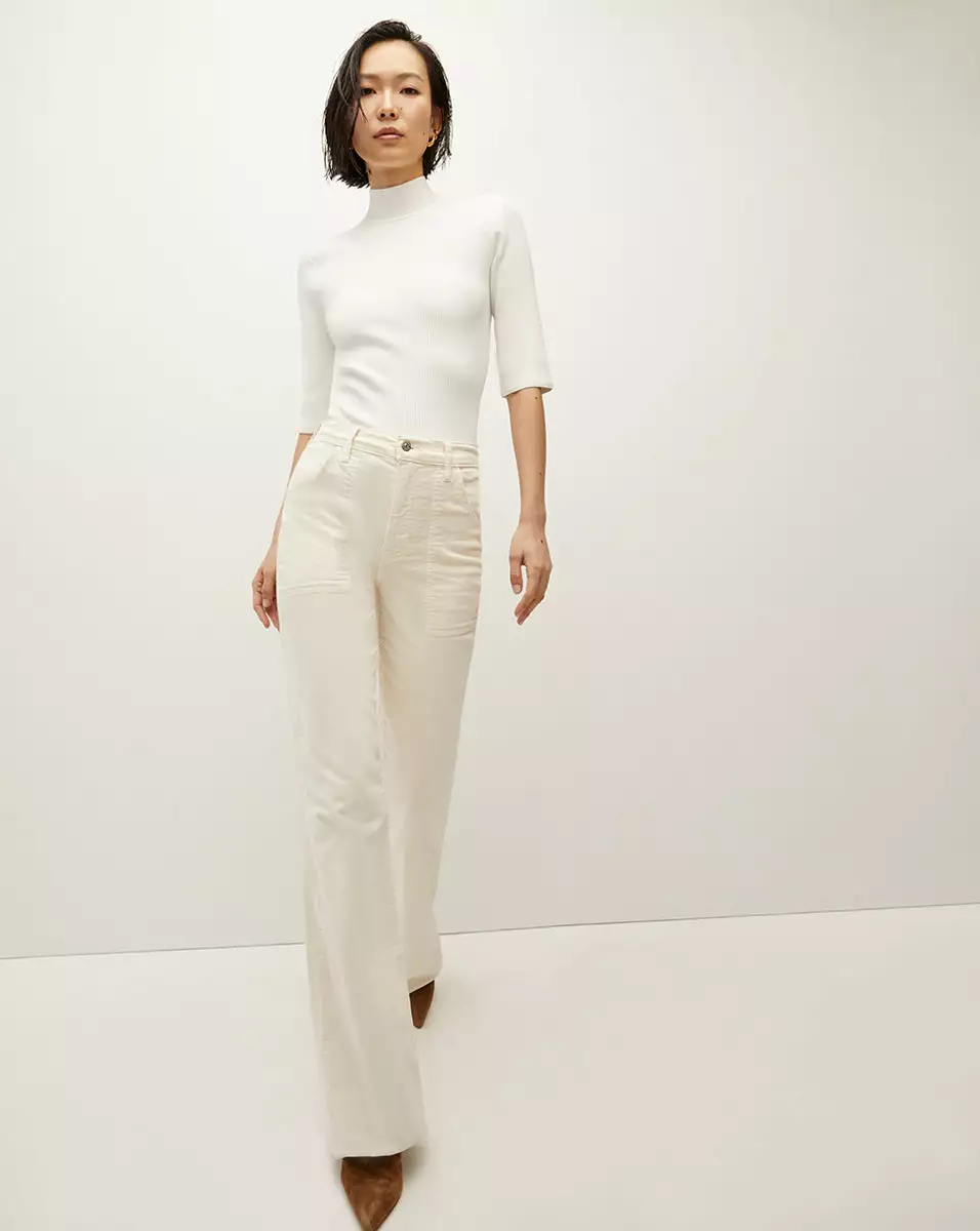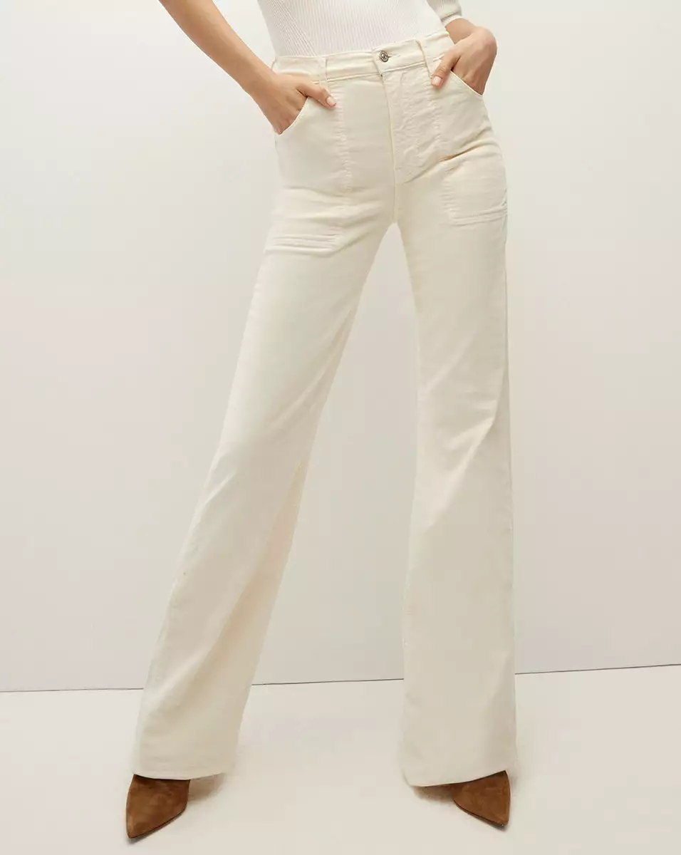 Meet the Crosbie, our elongating high-rise, wide-leg jean—now in soft corduroy. Made in LA from premium stretch cotton and featuring front patch pockets and our signature V-shape belt loop at the back, this VB favorite is as versatile as it gets. Pair with tonal tops for a monochromatic look that’s always chic.
