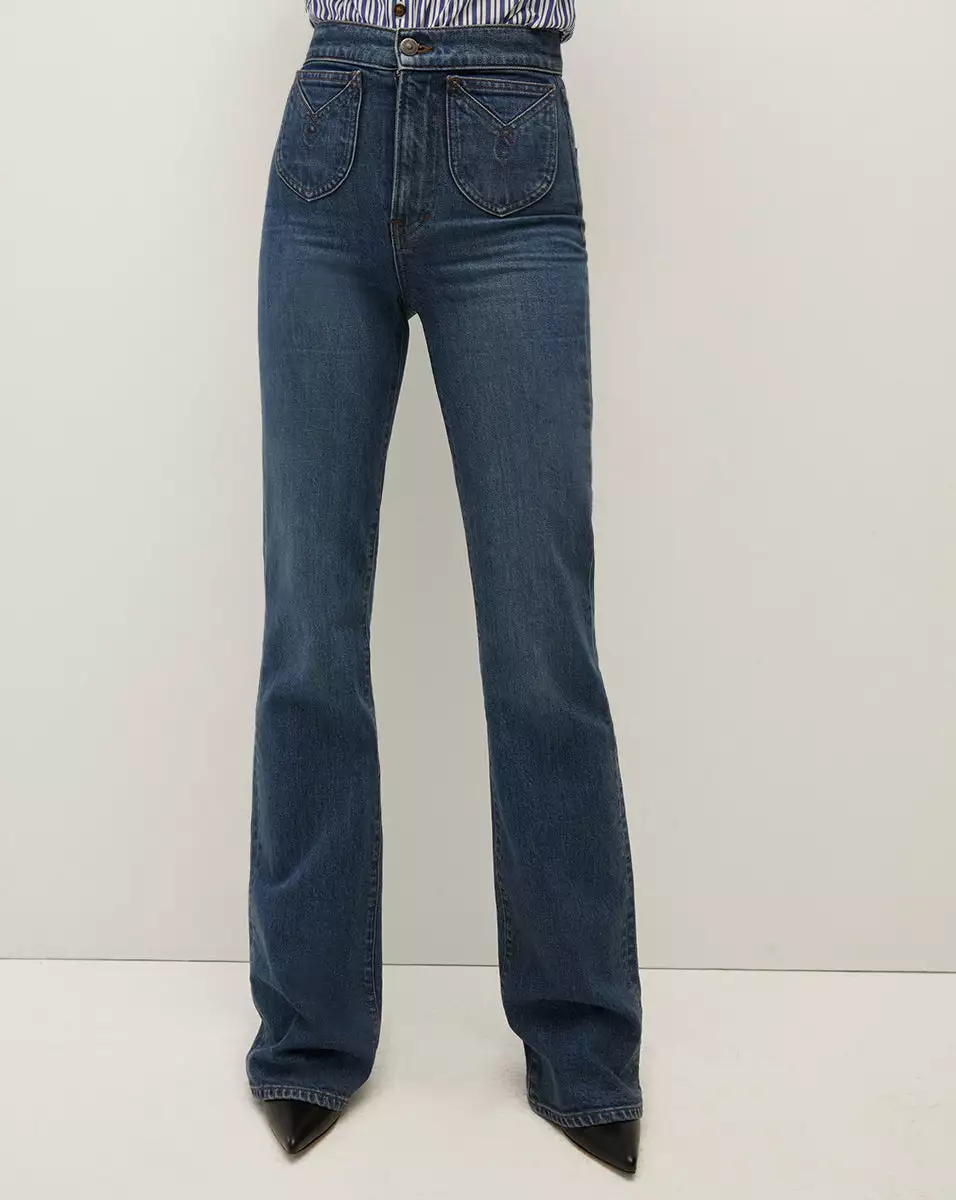 Meet the Crosbie, our elongating high-rise, wide-leg jean—now with Western-inspired front patch pockets. Made from premium stretch cotton, this VB favorite is as versatile as it gets. Style with a tee and booties for day; dress it up with a jacket and heels for nights out.