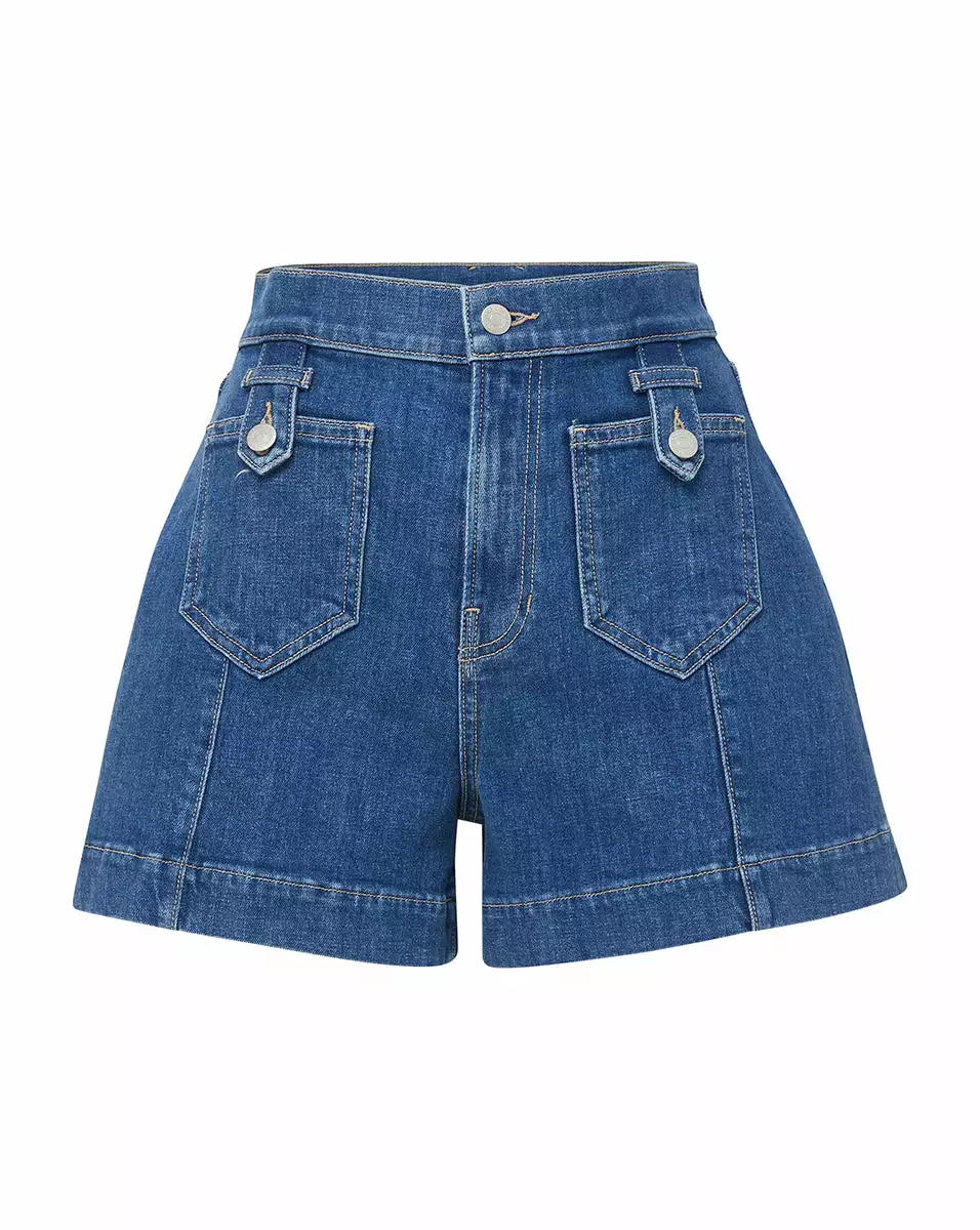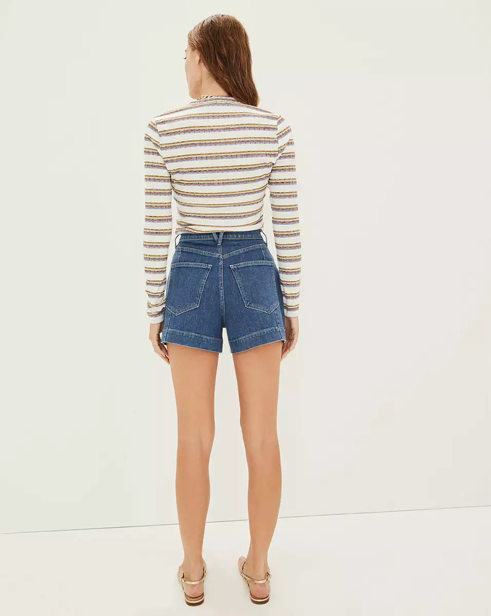 We’ve perfected the weekend short. Expertly tailored from our signature stretch denim, the Darnele will effortlessly take you through your day. This go-to style features a high waist, tabbed pockets, front seaming and a flattering A-line silhouette. Tuck in your favorite blouse and finish with wedge sandals for the perfect warm-weather look.