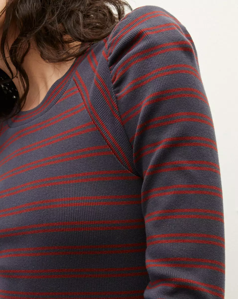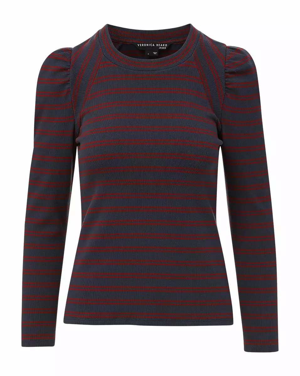 With puffed sleeves and bold stipes, the Delano in stretch cotton adds oomph to your everyday wear. Style with tonal pants for a chic weekend brunch look.