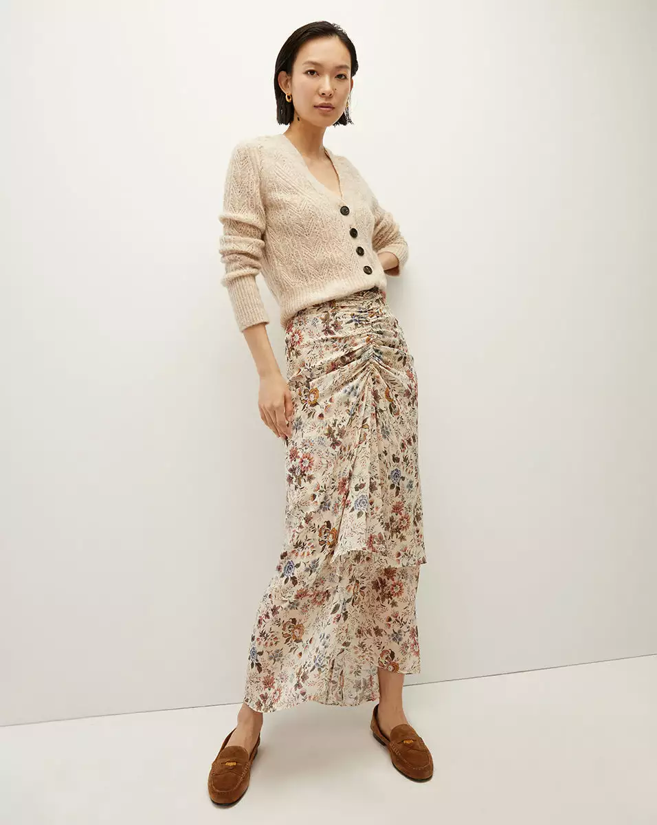 Crafted in a luxe baby alpaca blend, the Italian-spun Delent cardigan is cozy-soft yet lightweight. It has a slim fit, making it a true layering essential. Knit in a mixed pointelle stitch, its chevron patterned weave gives it a polished look. Wear it open over a tonal tee, or its coordinated vest.