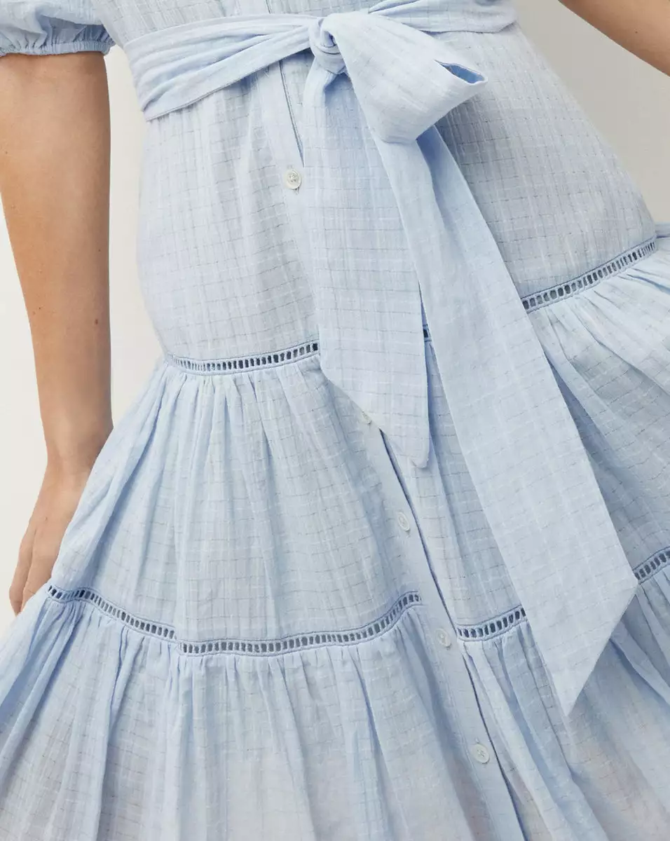 Made from 100% breathable cotton, the Dewey will be your new effortless go-to. Cut for a relaxed fit, the dress features gently puffed sleeves with elasticized hems and a tiered skirt with ladder stitching. Front-button closures and a detachable tie belt at the waist complete the look of this must-have piece. Pair with sandals or, for a cool, downtown take on everyday style, with sneakers.