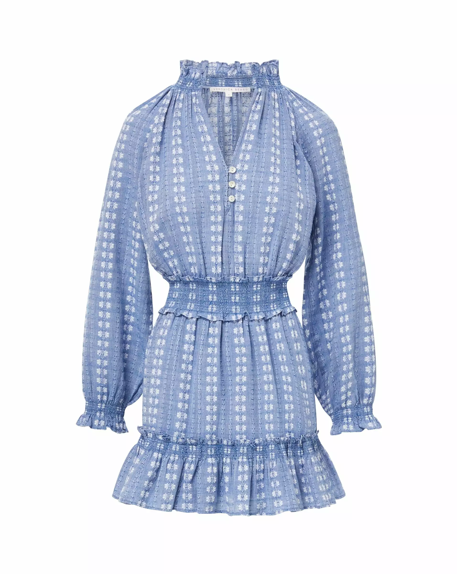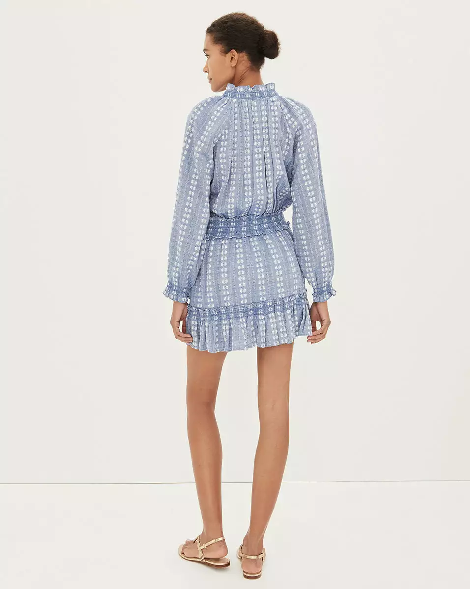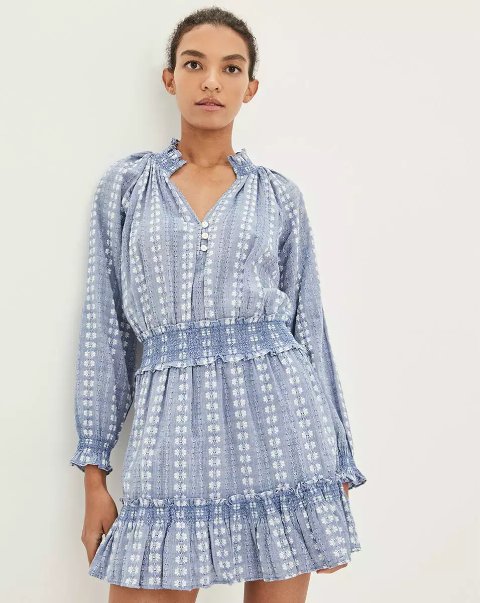 Comfort with feminine appeal—meet the Espie minidress, which combines a relaxed silhouette with a defined, elasticized waist and flattering pleat details. Featuring a stripe-like blue and white print, this effortless style is your answer to everyday chic. Style with sneakers for day; switch to heels for night.