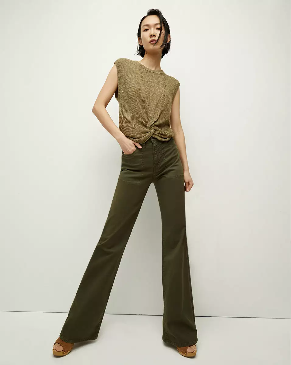 Expertly crafted from an Italian linen blend—with stretch for ease—the Kellen elevates the classic muscle tank with a twist-front detail. Featuring a crew-neck silhouette and delicate pointelle stitching, this semi-sheer top is a versatile layering essential for bonfires, boats and beyond. Pair with jeans, printed shorts or tonal pants for a monochromatic look that’s always on-trend.