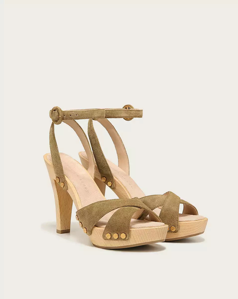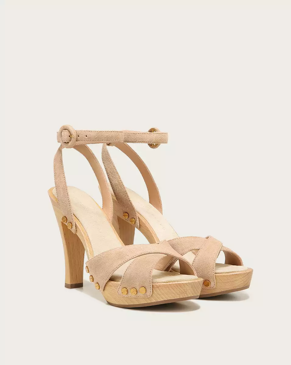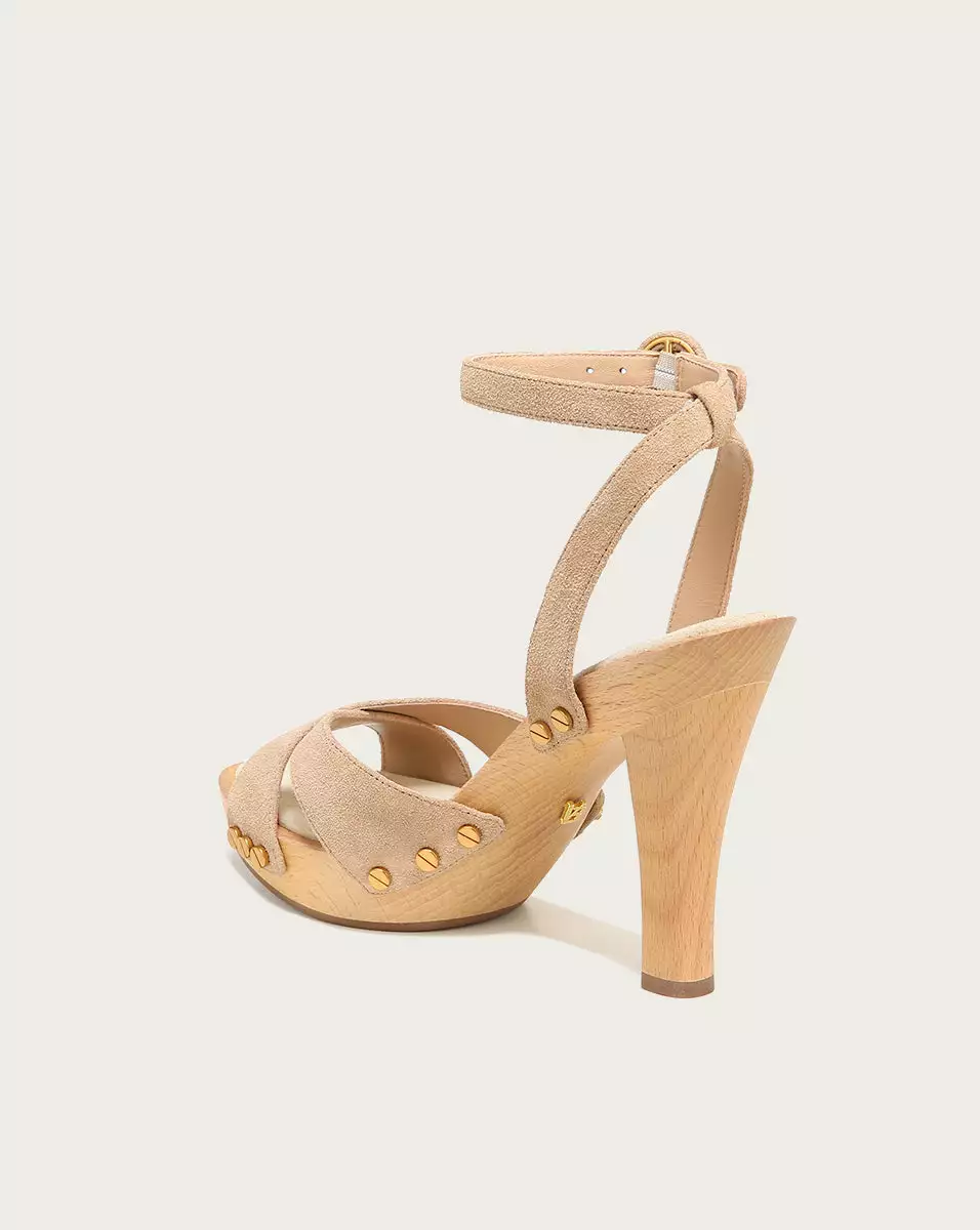 Elevate any look with the Lamont. With a substantial 4″ wooden heel, the platform sandal features an adjustable ankle strap, suede upper and gold-tone studs at the sides. Wear with your favorite floral dresses for a summertime look everyone will love.