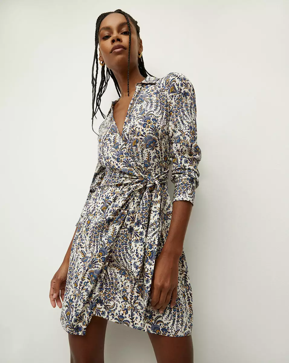 The wrap dress that’s better than the rest. Crafted from a luxe stretch-silk blend, the effortless Lavella features long sleeves and a relaxed mini silhouette that’s easily adjustable to cut a more flattering figure. An ornate floral print and collared neckline complete the look of this timeless classic. Wear with espadrille wedges for quintessential summer style—this is great from work to weekend and easily packable for vacation.