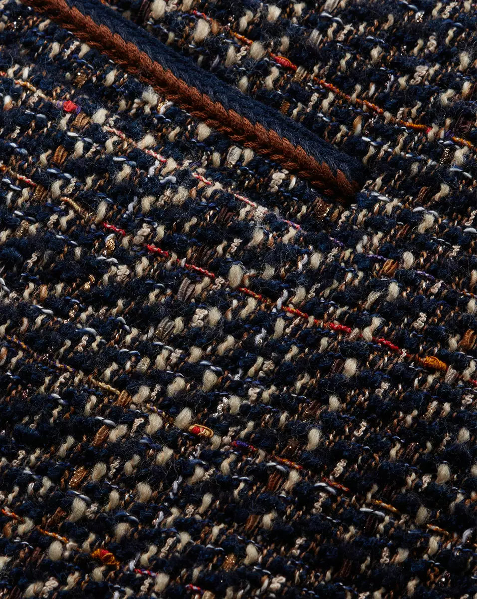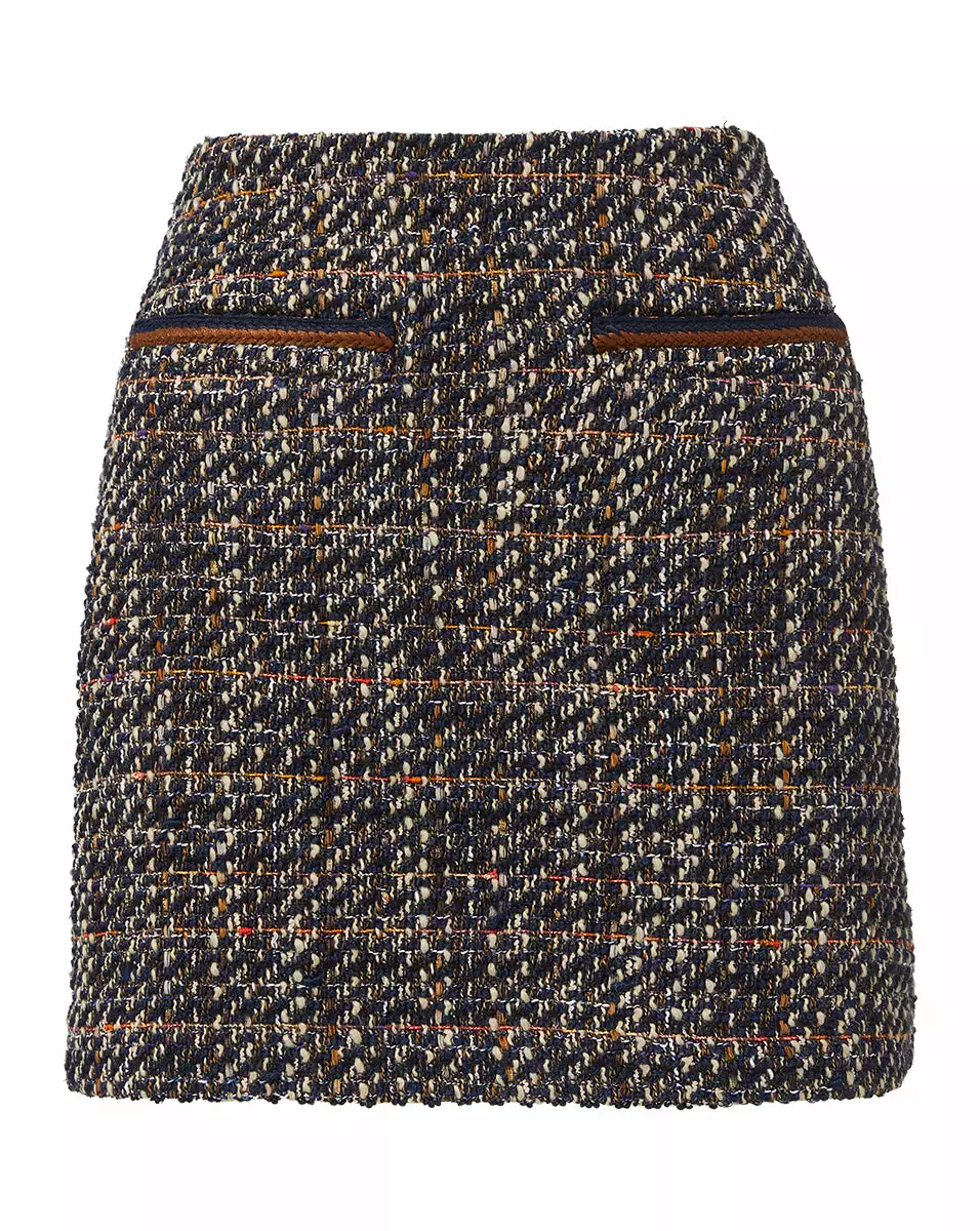 Expertly cut from our luxe bouclé tweed, the Perry takes a traditional fabrication and makes it modern with its miniskirt silhouette. Detailed with contrast piping, this sophisticated meets playful style is further enhanced with its subtle flecks of color. Wear with its coordinating jacket for a power suit moment no one will forget.
