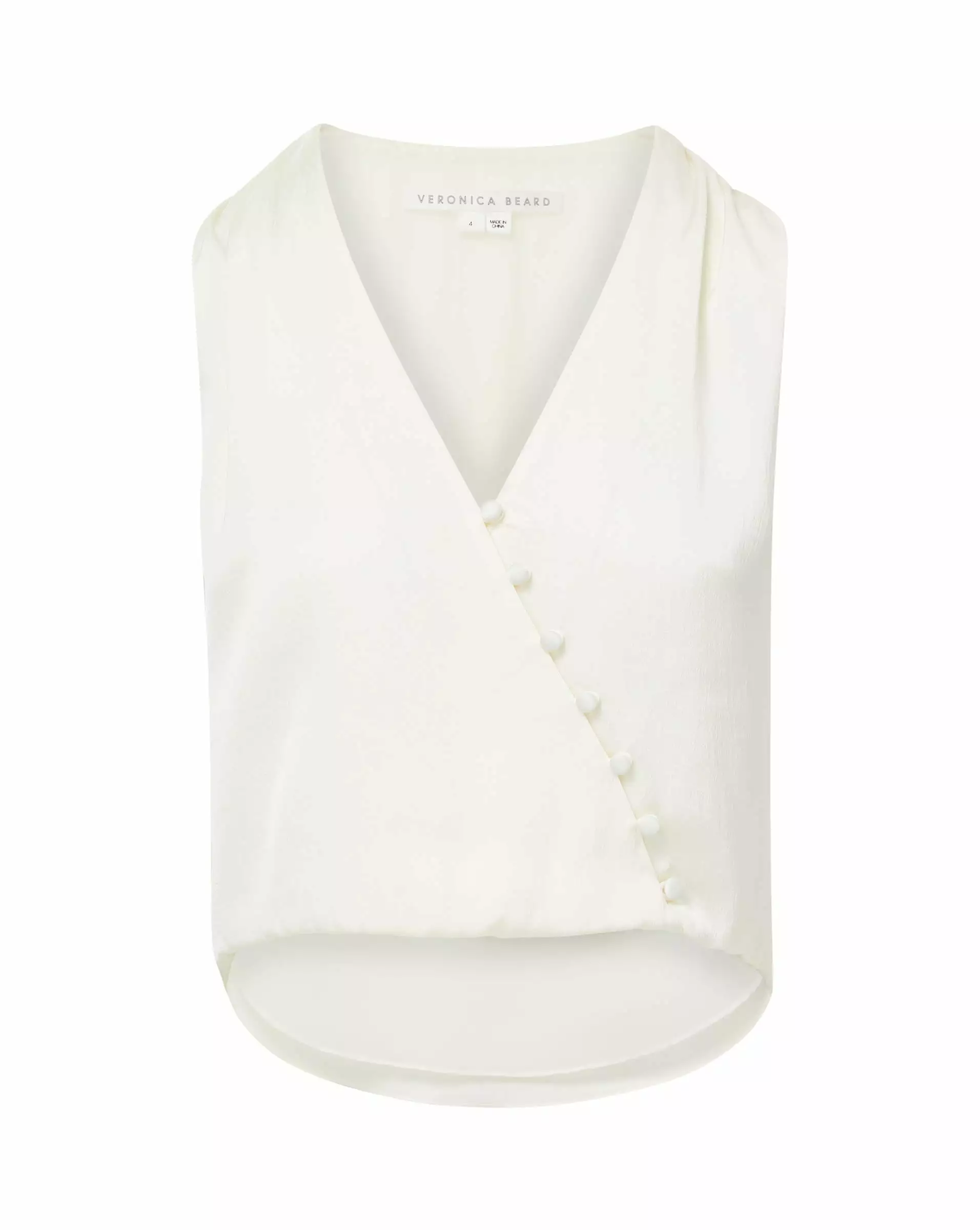 Meet the essential Rahi top. Crepe-satin is cut for a relaxed fit, gathered at the shoulders and finished with asymmetrical tonal buttons. It comes in an ultra-versatile ivory hue with a silky sheen, making it perfect for layering into evening looks. Wear with your favorite jeans, skirts, and pants—you name it.