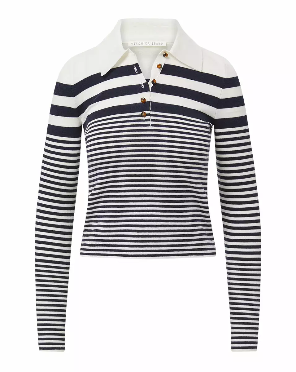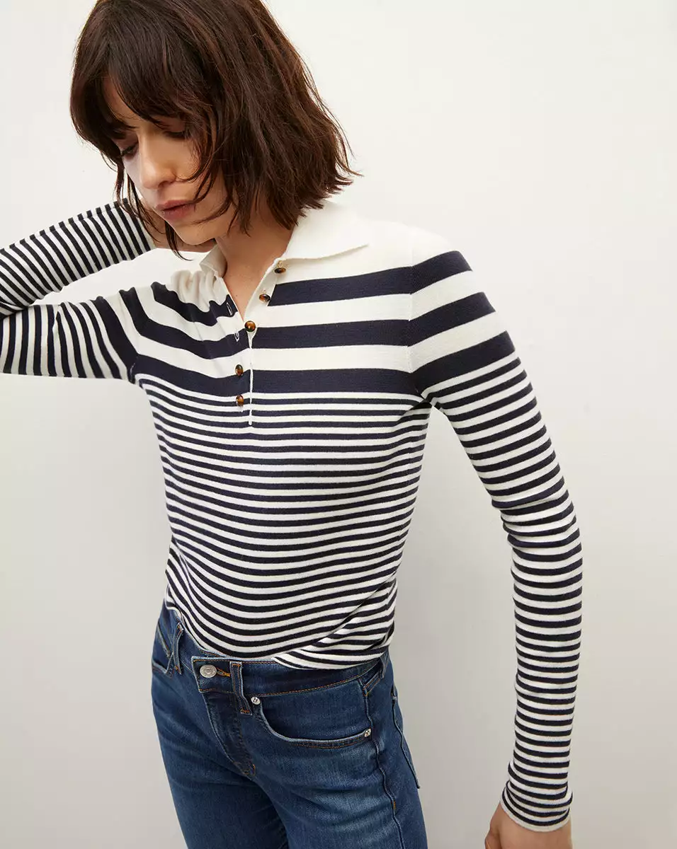 Made from our fine-gauge merino wool, the Raj polo top offers a long-standing quality, with a lightweight look and feel that’s perfect for transitioning between seasons. Detailed with stripes and a classic polo-top design, this timeless style is equal parts prep and polish. Wear with jeans and sneakers for weekend errands; switch to trousers and heels for a more elevated look.