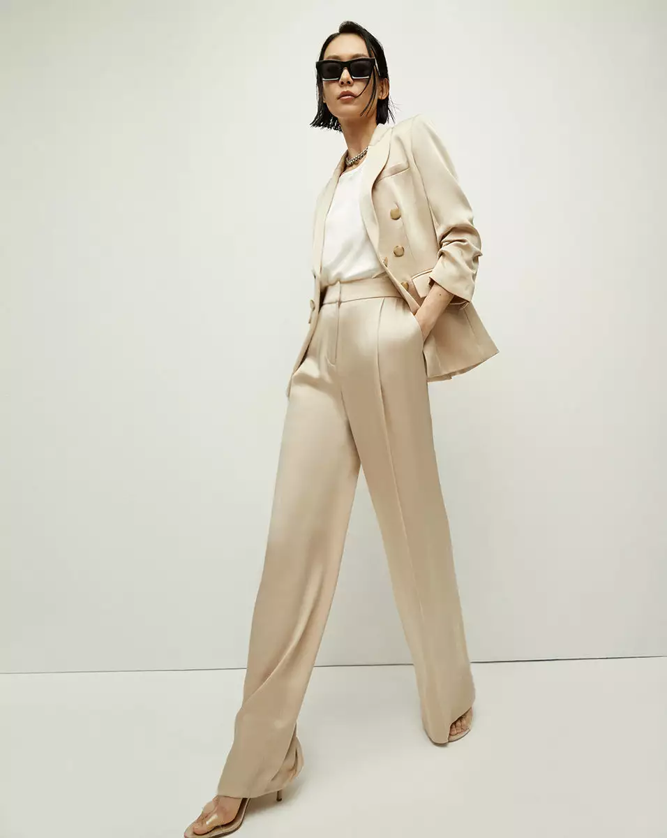 An elevated take on the white tank top, our Sabrina top is a true wardrobe staple thanks to its classic silhouette and elegant crepe-satin fabrication. Its ultra-lightweight, ivory body makes it perfect for warmer months, too. Wear alone with jeans and skirts, or layer it under any of our jackets.