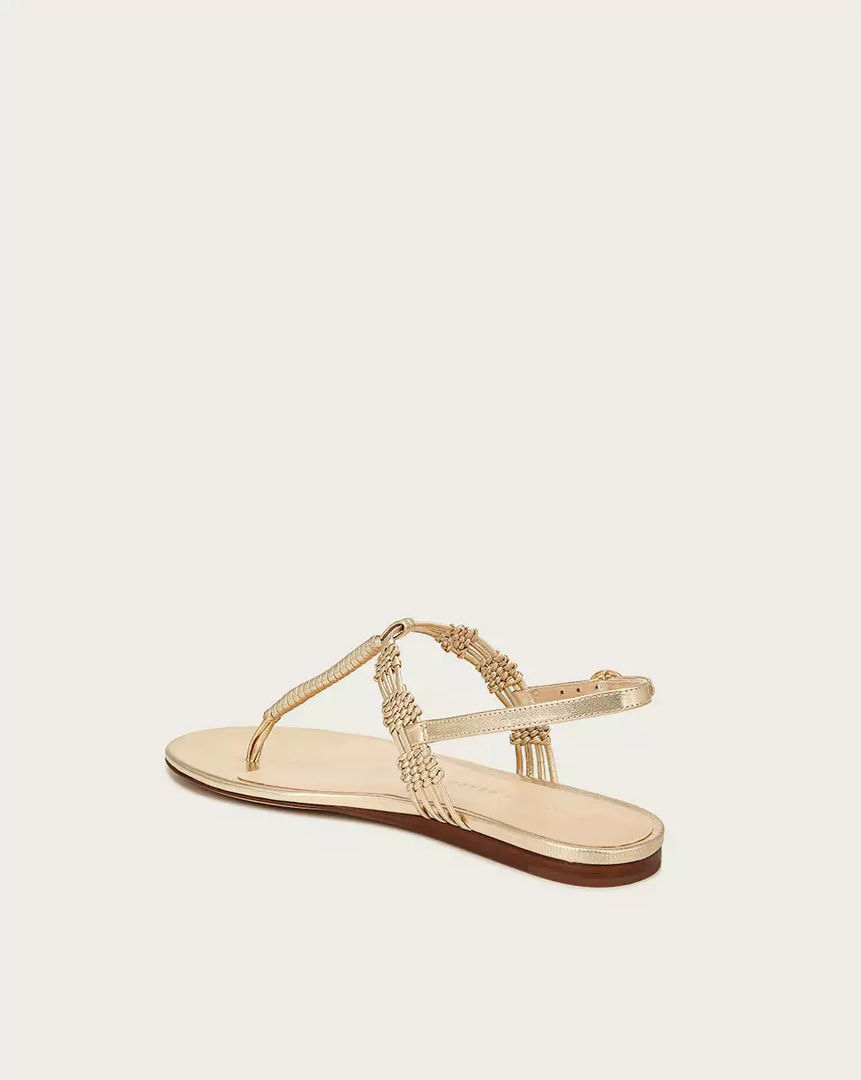 Meet Sola, our refined take on the quintessential summer sandal. A timeless thong silhouette and a cushioned footbed make this a versatile favorite while the intricately crafted leatherwork—in high-shine metallic gold tones—ups the sophisticated ante. Effortlessly comfortable, this looks as good with pants as it does with dresses.