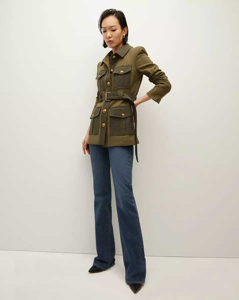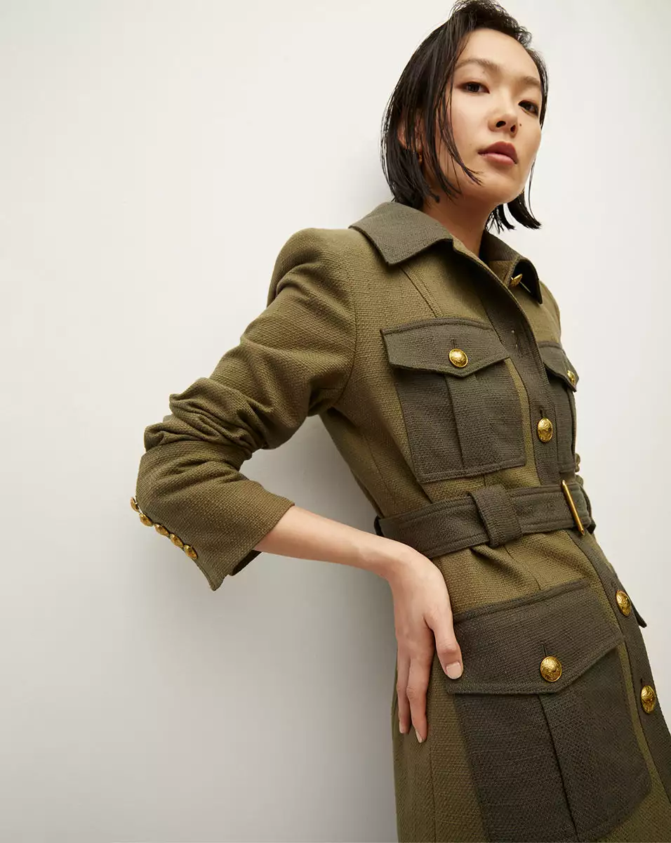 Merging style and practicality, the Sonoma takes the utilitarian jacket trend and elevates it with precision tailoring, distinctive details, and a can’t-miss two-tone design. Crafted from our lightweight tweed, ideal for transitional weather, this sharp and sleek style features four patch pockets at its front, a removable belt, and shoulder pads for balanced proportions. Punctuated with our signature gold crest buttons, the Sonoma jacket is the statement you’re day-to-day wardrobe has been waiting. Pair with straight-leg pants and minimalist heels for an exercise in chic.