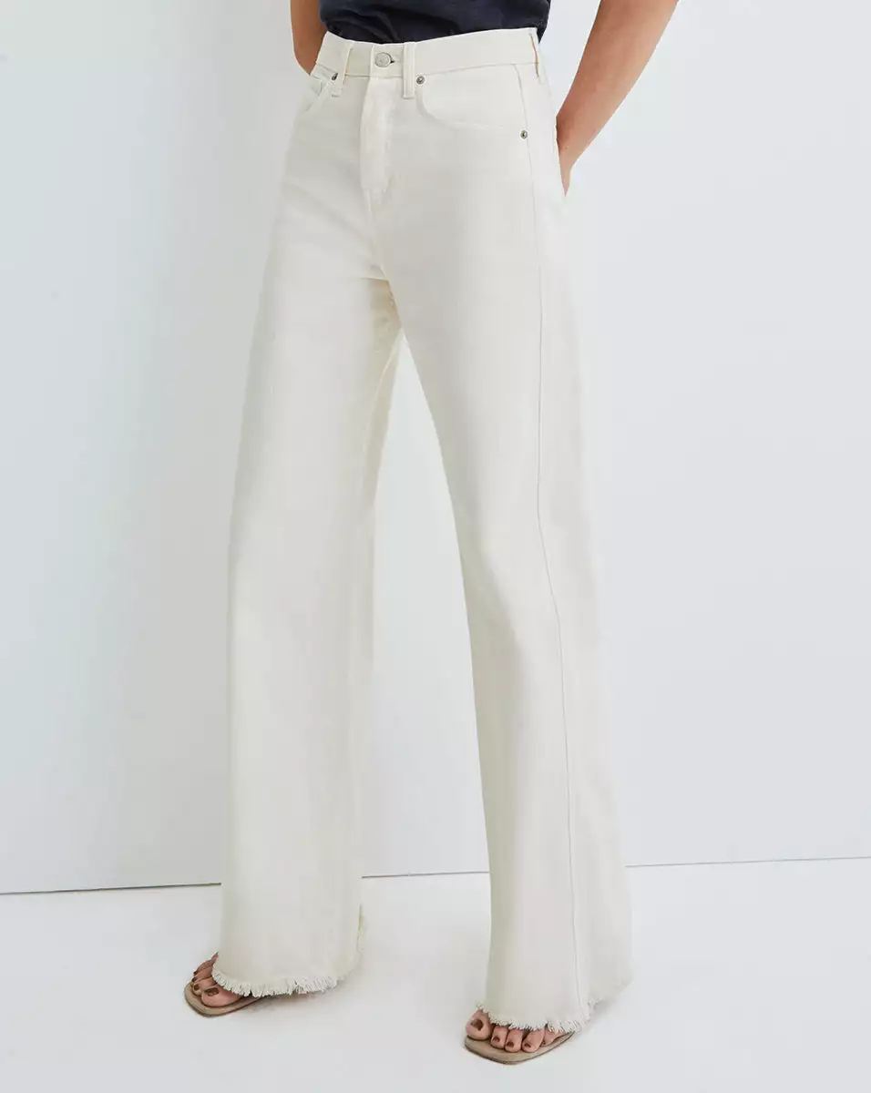 Updated in fresh ecru, the Taylor is a classic high-rise and wide-leg style in non-stretch denim. Flattering and always on-trend, this wear-forever jean also features a raw hem for a fashion-forward finish. Pair with everything from tonal silk blouses to plain white tees for a chic and easy look.