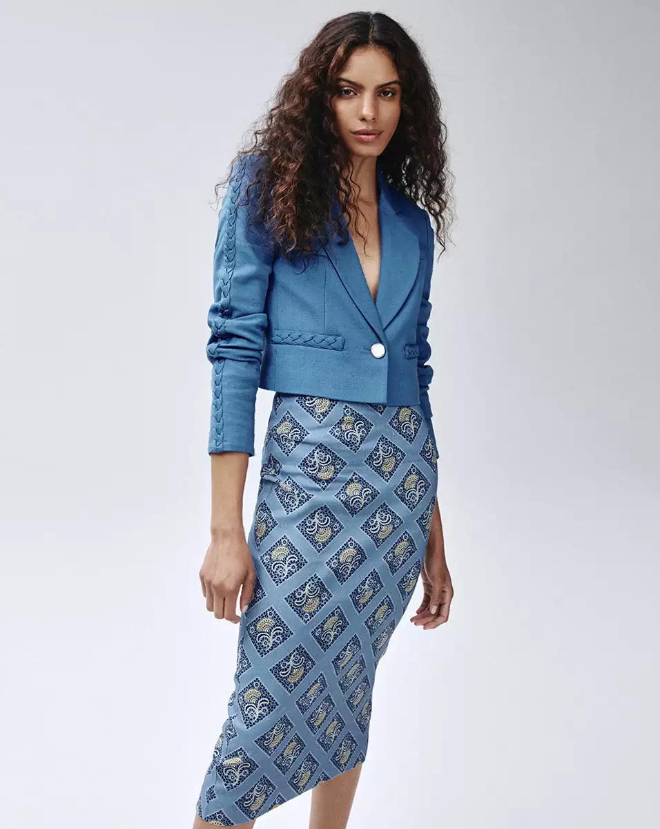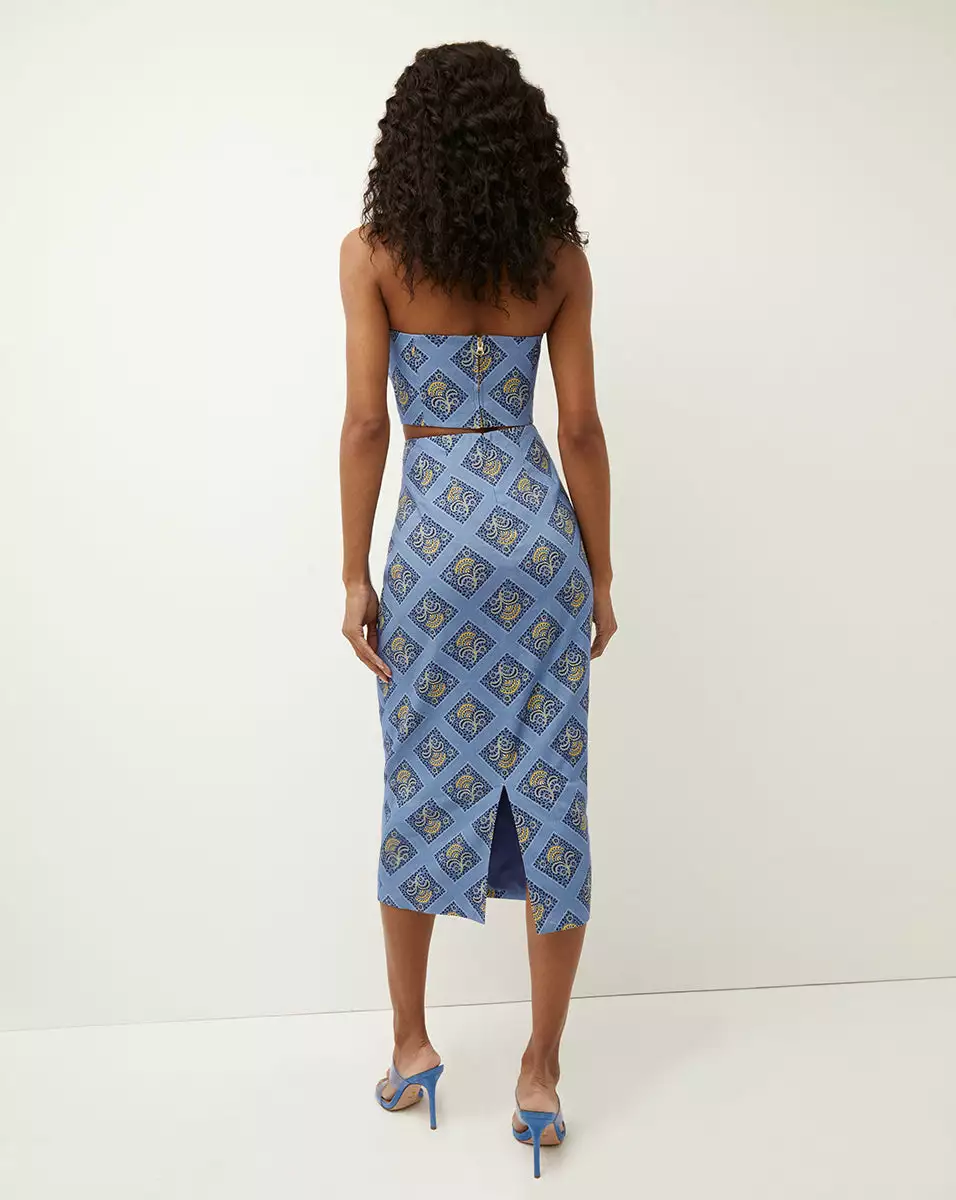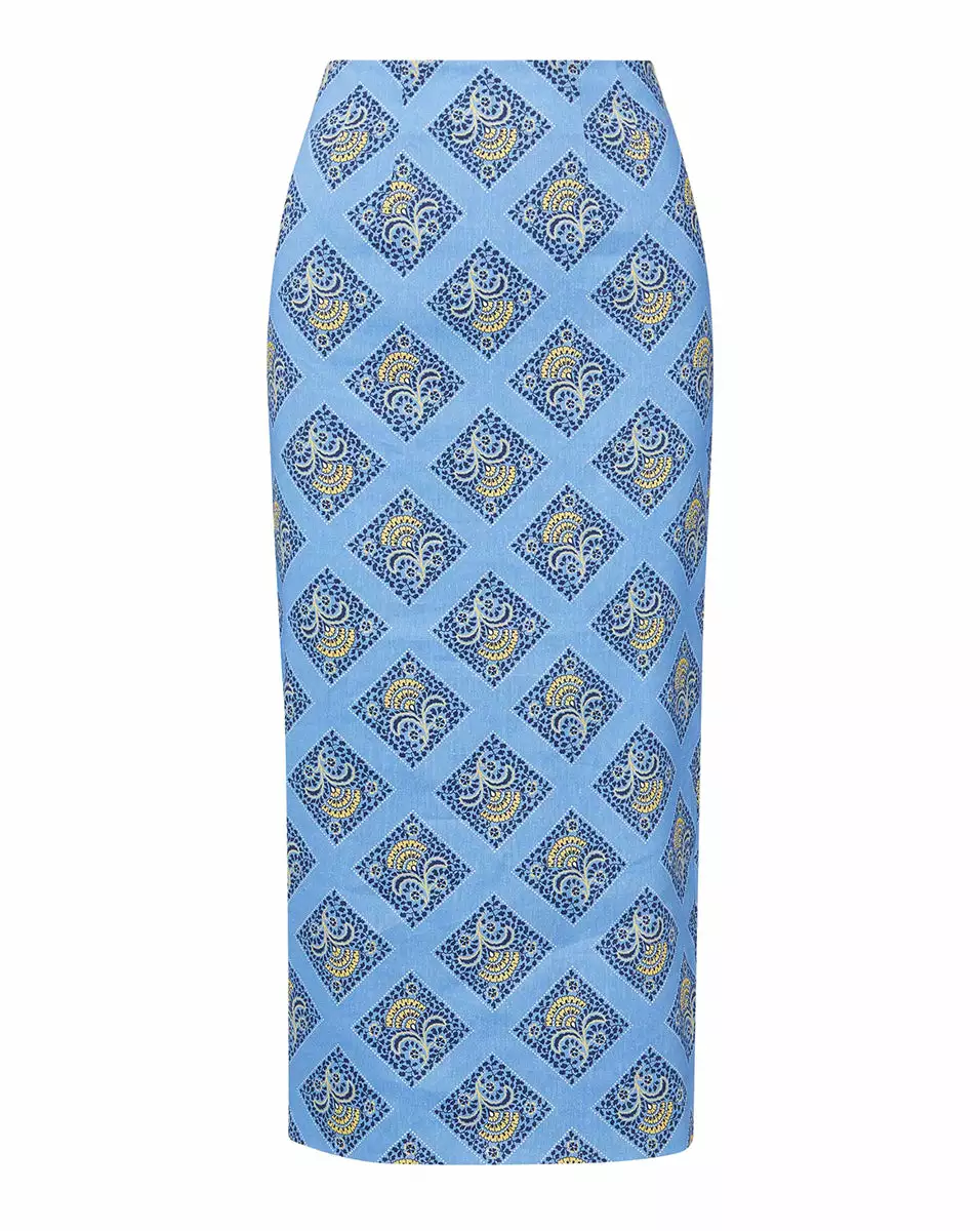 The ultimate spring skirt, in a refined floral grid print and pencil-skirt silhouette. The lightweight linen fabric allows for breathability and a back slit adds ease of movement. Pair with the coordinating Ziene top for a polished garden party look—just add a wide-brim straw hat.