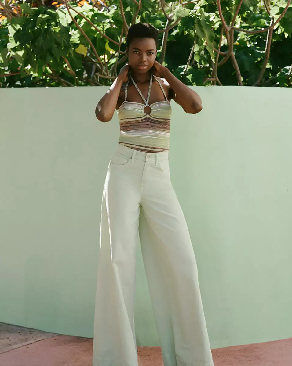 The perfect summer top has arrived. Expertly crafted from a space-dyed stretch knit, the Velza features fun and flirty M-shape straps and a keyhole detail at the chest. Wear with tonal pants for a coordinated look; add a linen blazer for polish.