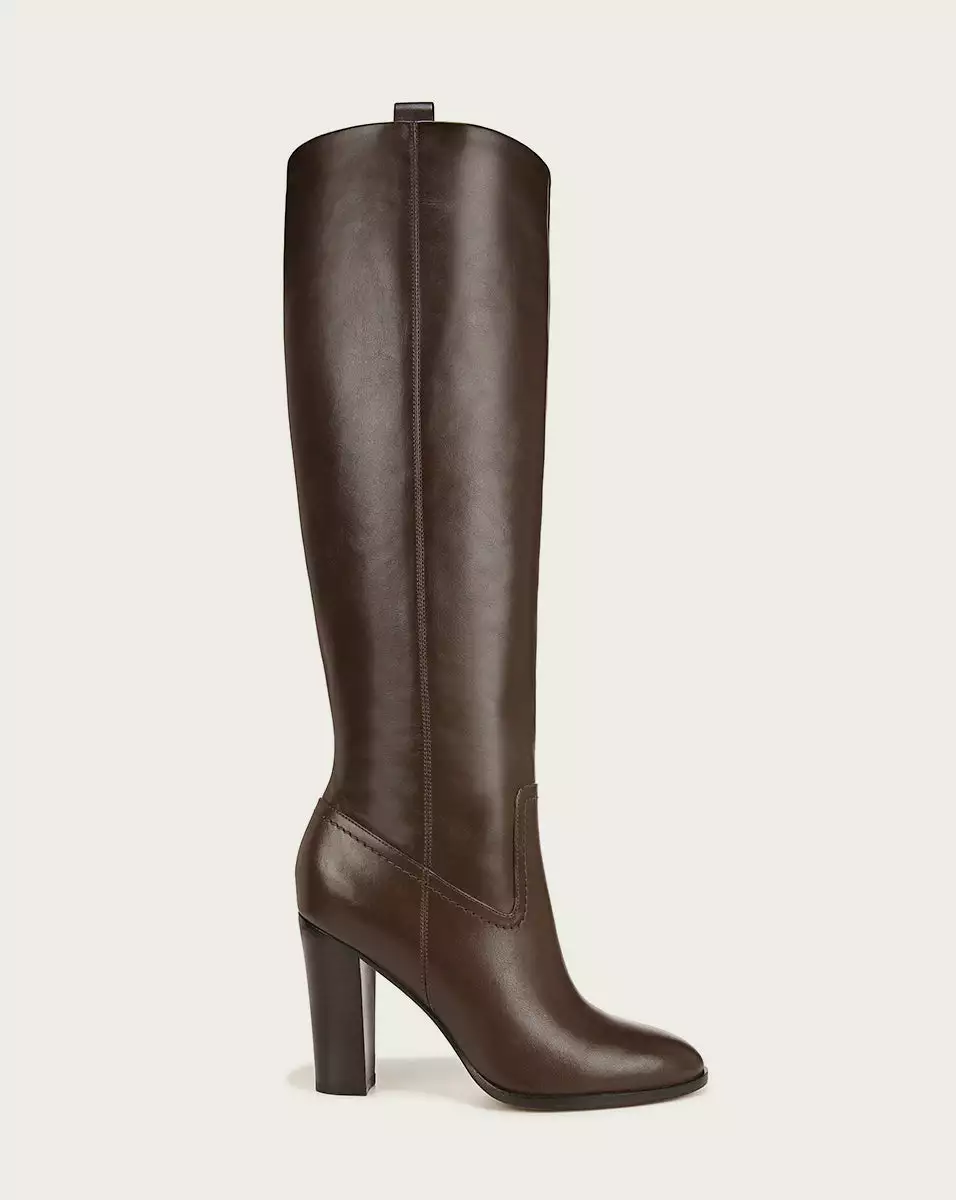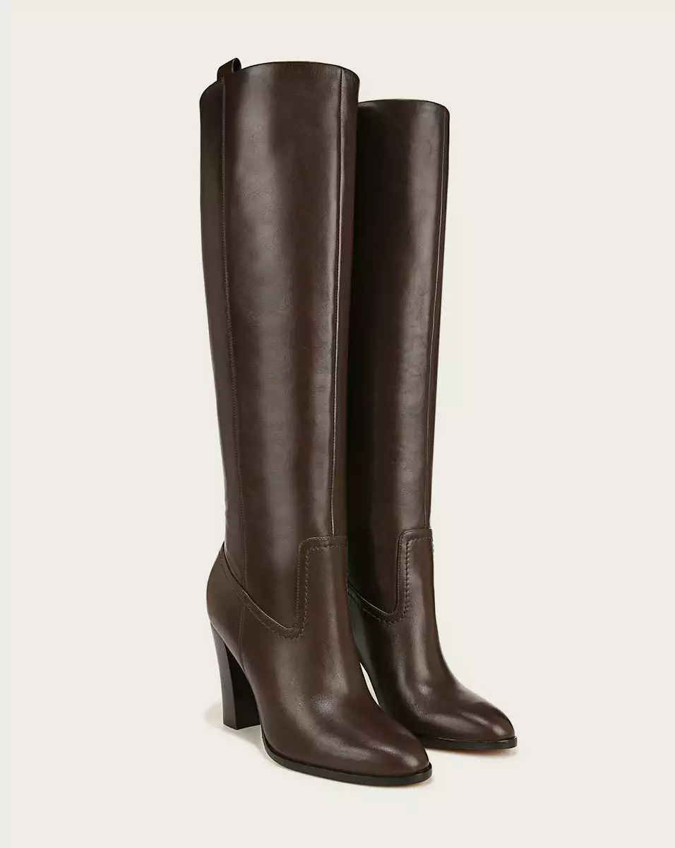 A great knee-high boot is a cornerstone of every wardrobe. We elevated ours—expertly crafted from shiny leather—with a sturdy 3.75†stacked heel, a comfortable round toe and a roomy boot shaft. This classic pull-on style—with tabs for ease—is destined to be your new cold-weather favorite. Endlessly versatile, this looks as good over jeans as it does with flowy dresses.