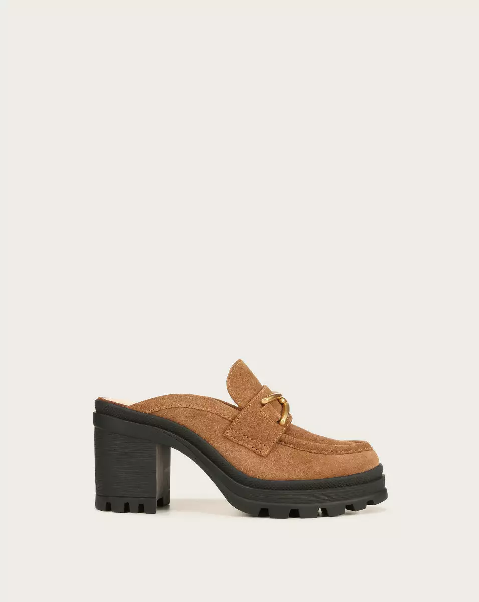 The timeless appeal of a loafer with all the ease of a slip-on mule—meet the Wynter. Expertly crafted from soft suede, this 3†heel features a cushioned footbed, gold interlocking-V hardware and a rubber lug sole for added stability and grip. Endlessly versatile, this will take you from work to weekend and beyond.